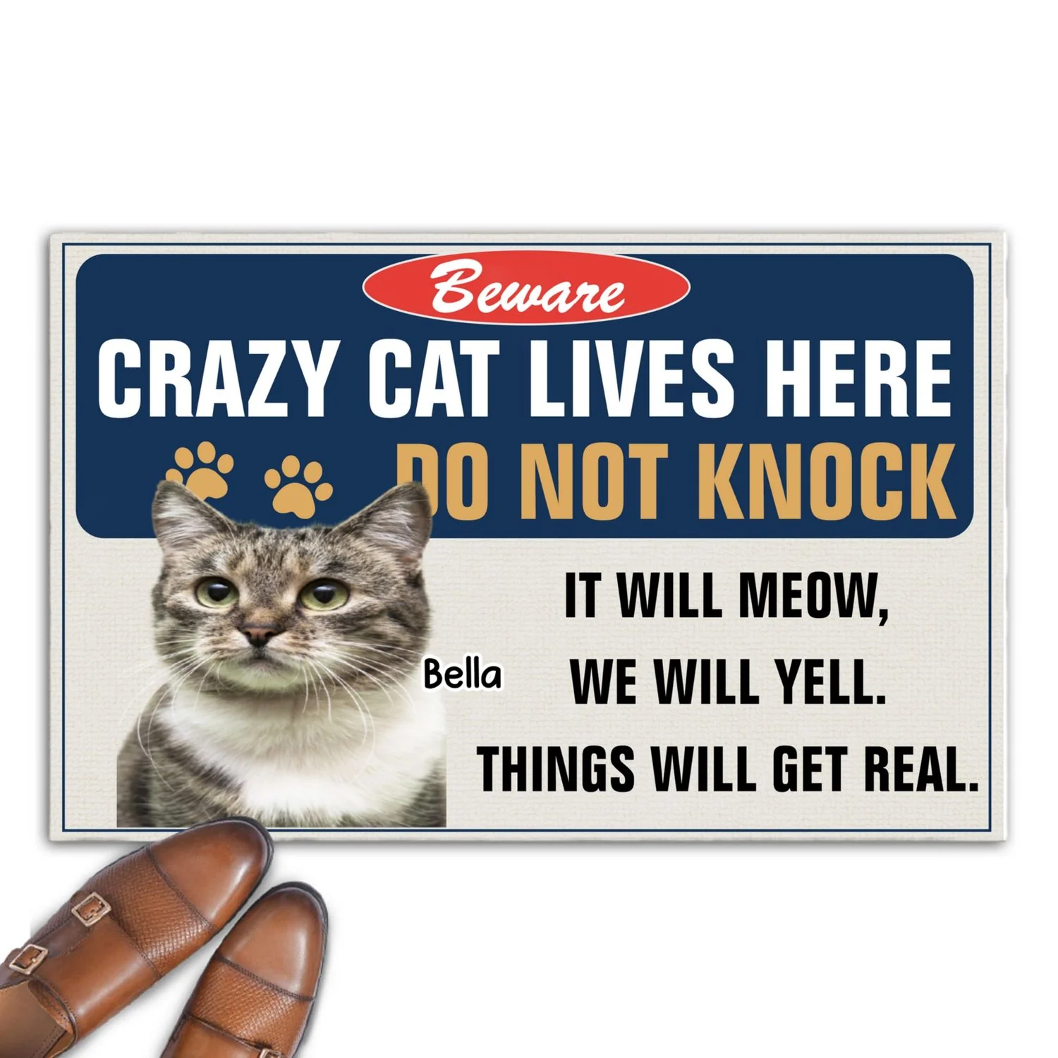 Enter At Your Own Risk Cat Photo Version - Personalized Custom Doormat