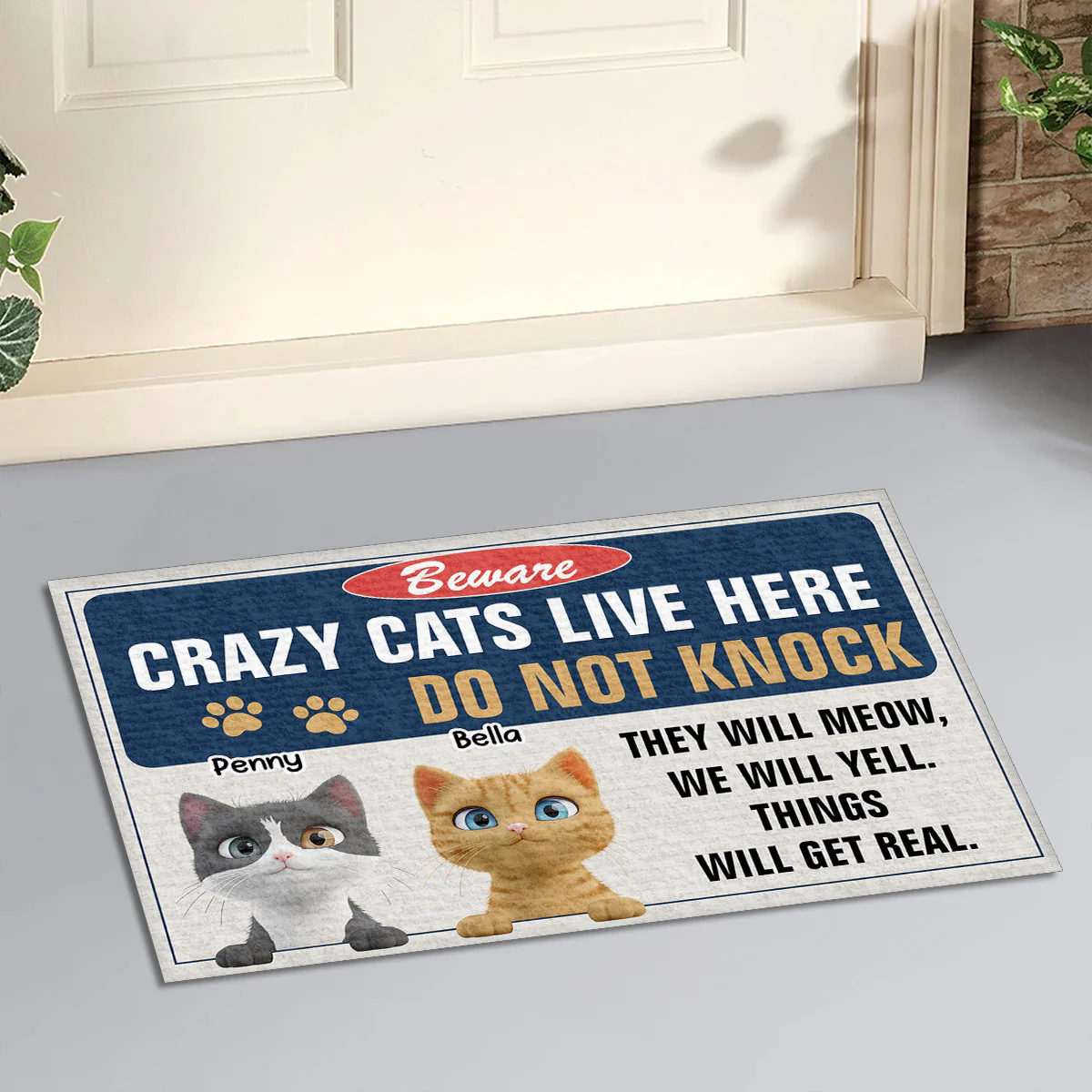 Enter At Your Own Risk Cat Version - Personalized Custom Doormat